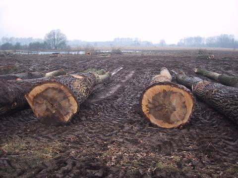 Mitte Februar wurden von der Stadt Viersen unter Polizeischutz 42 fast ausnahmslos gesunde Pappeln gefällt. Sie standen an der Grenze eines Naturschutzgebietes, auf der anderen Seite liegt ein Kartoffelacker. Die Fällung war rechtswidrig, denn sie war im aktuellen Forstwirtschaftsplan nicht vorgesehen. Offizielle Begründung der Stadt: „Gefahr in Verzug, denn bei Sturm könnten Äste herunterfallen.“(!) Pächter und Eigentümer der Ackerfläche hatten sich beschwert, dass sie nach Stürmen Äste auflesen müssen. Im Umweltausschuss wurde die Fällung am 9.2.2012 strittig diskutiert (die Grünen hatten vorgeschlagen, einen Streifen des Ackers entlang der Bäume anzupachten; darauf CDU: „Man sieht doch, dass die wegmüssen!“) und beschlossen. Am 14.2. schuf die Stadt Tatsachen. Der Vorgang „liegt“ derzeit zur rechtlichen Prüfung beim Umweltministerium NRW.