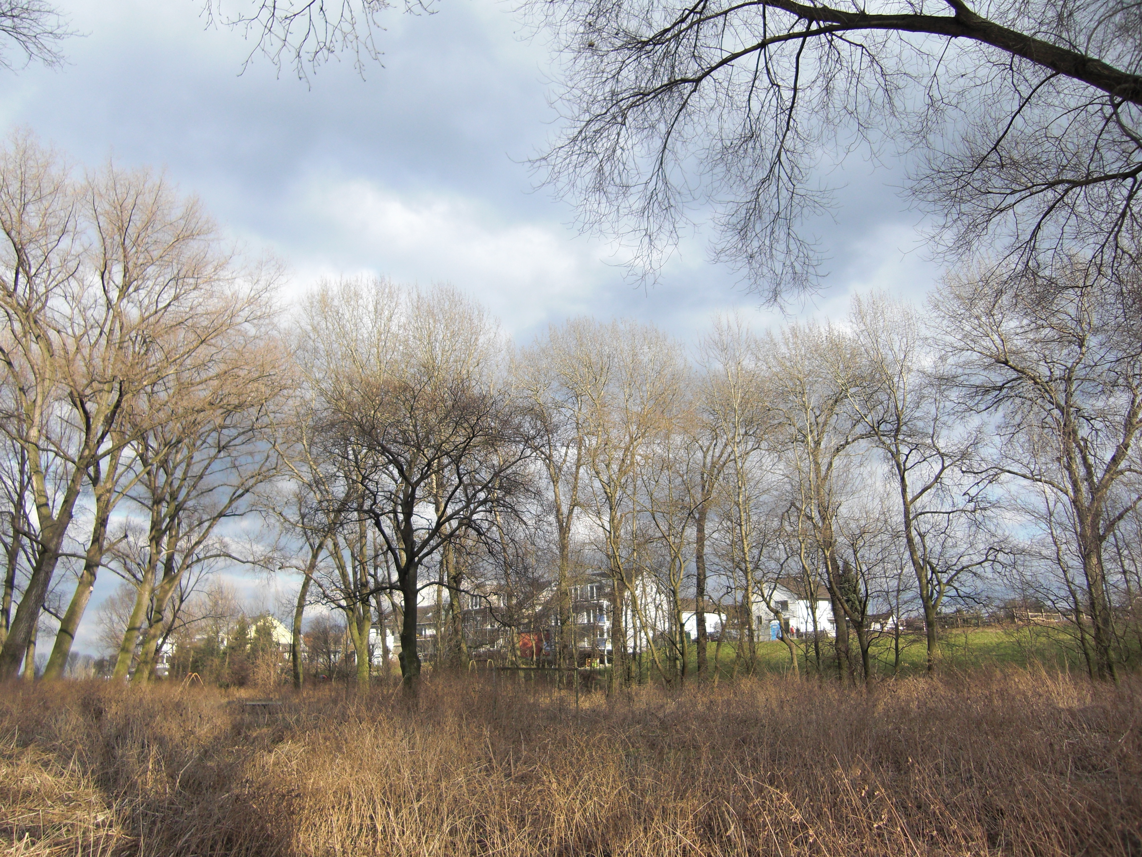 Man teilte uns in der Mail mit, dass die Pappeln unterhalb des Hochwasserschutzdammes hinter den Angelteichen zum Rhein hin stehen und sich in einem sehr schlechten Zustand befinden. Bereits in der Vergangenheit fielen Starkäste, aber auch ganze Kronenteile herab und die Gefahr, die von den Bäumen ausgeht, sei nicht zu unterschätzen.